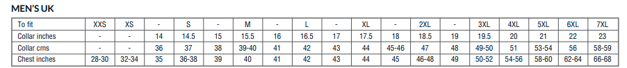 | Chest To Fit (ins) | 32-34 | 36-38 | 40 | 42 | 44 | 46-48 |