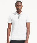 100% textured polyester. Breathable fabric. Contrast details on neck tape, placket and side vents. Three pearlised button placket. Twin needle sleeves and hem. Suitable for sublimation printing.
